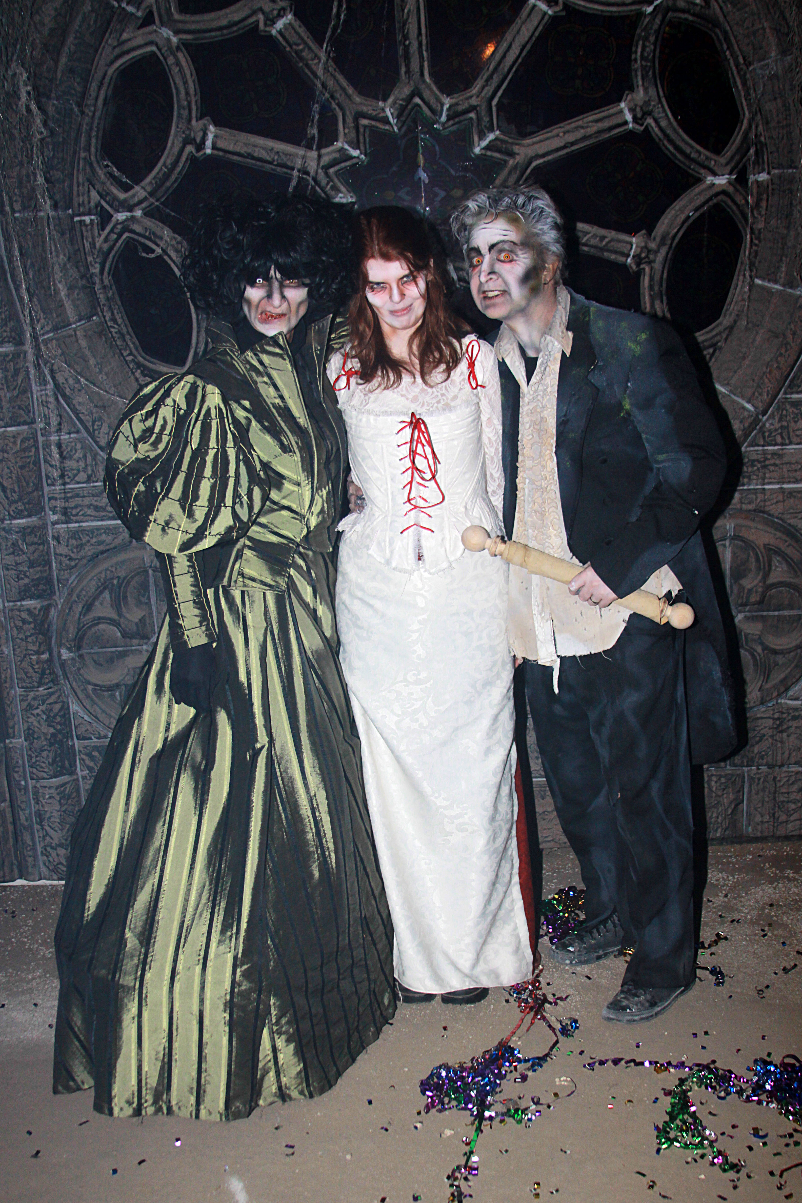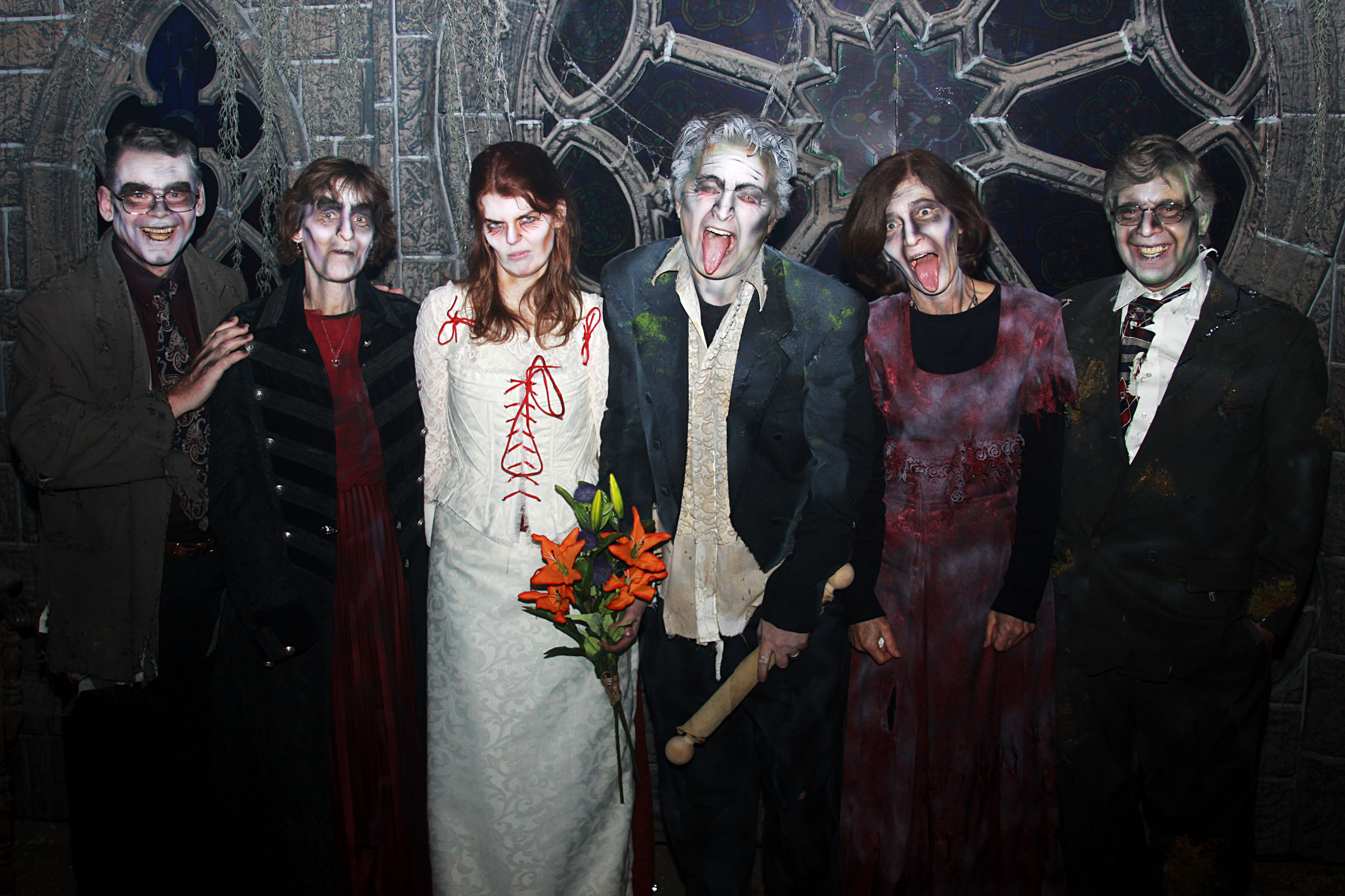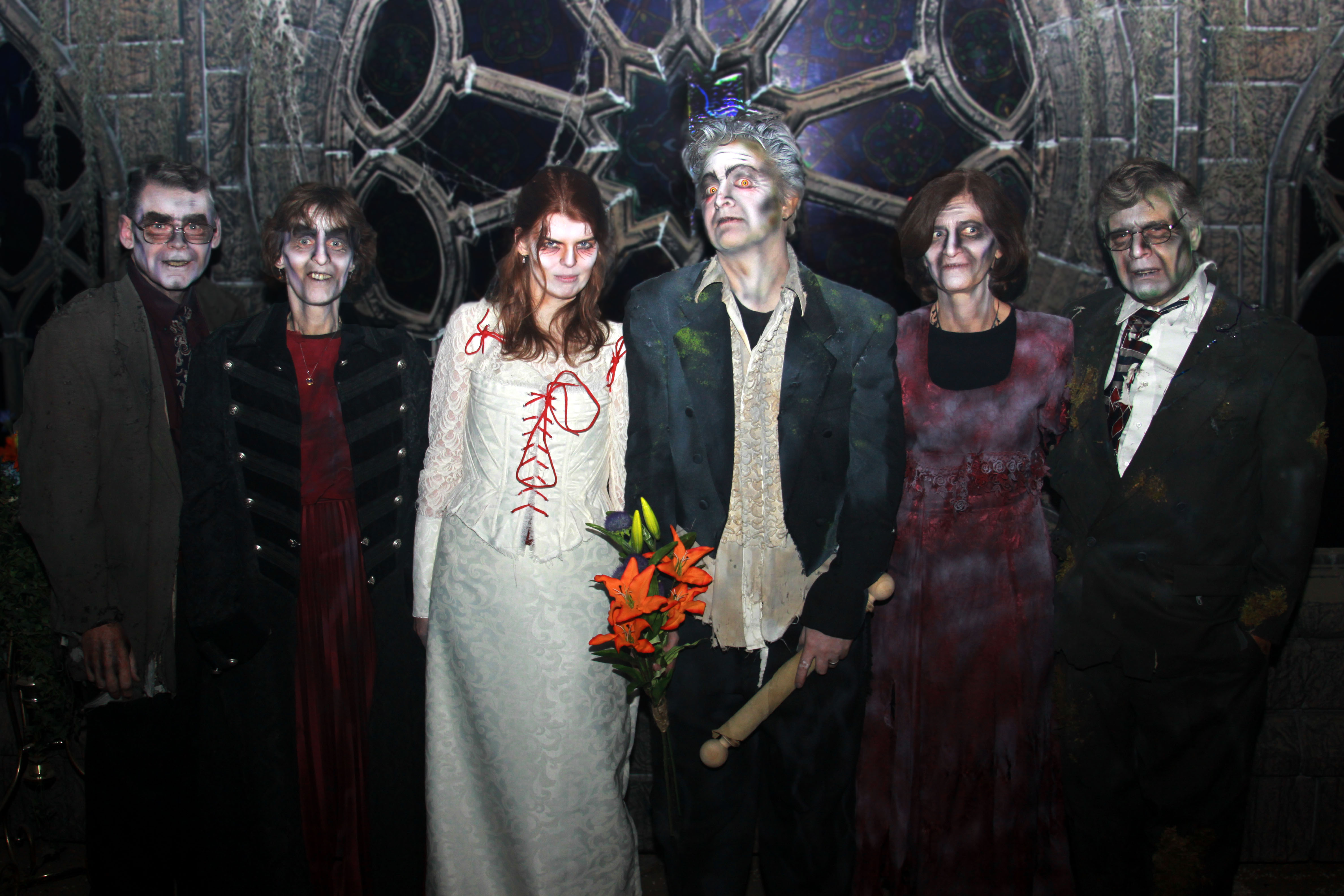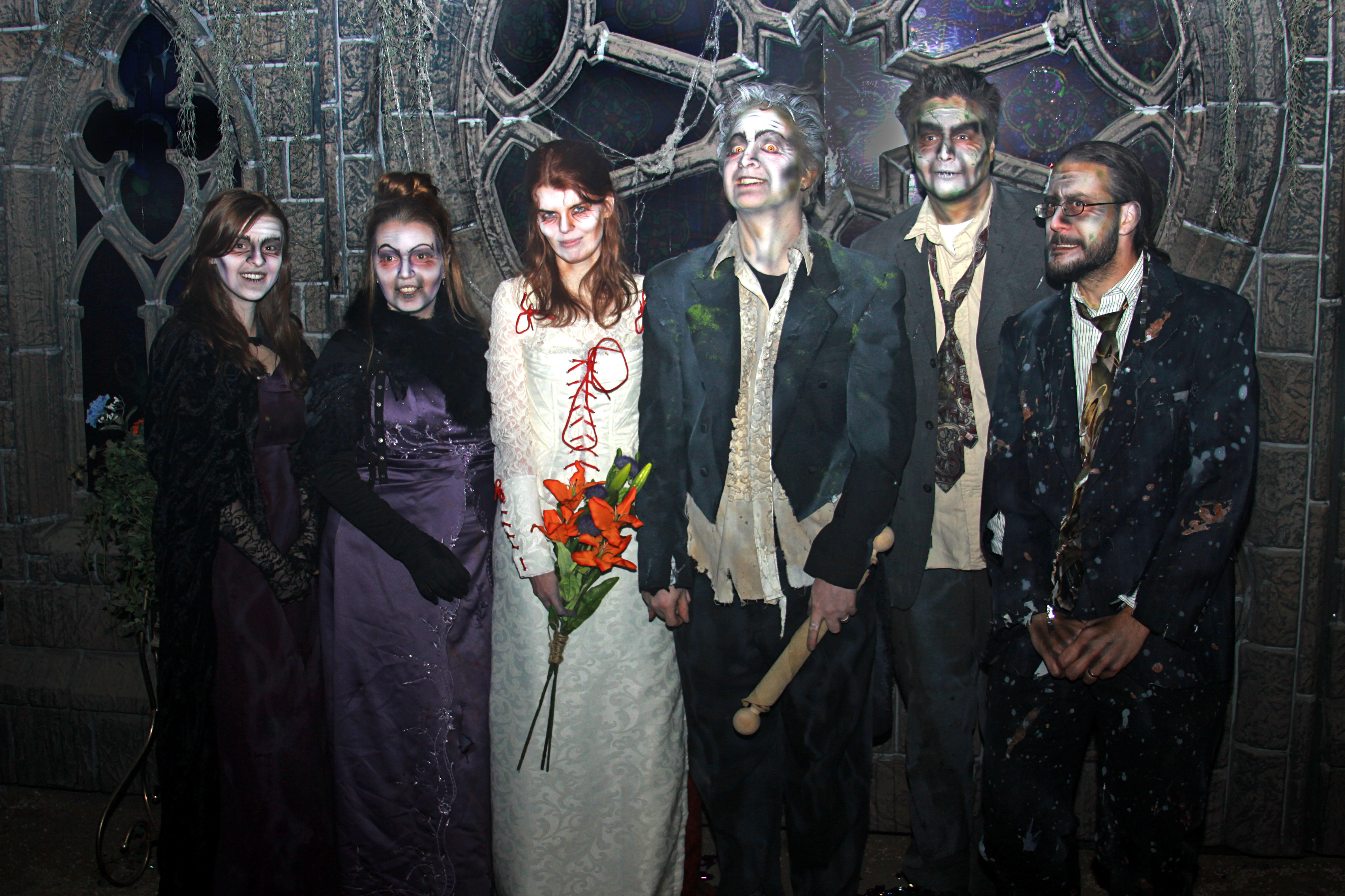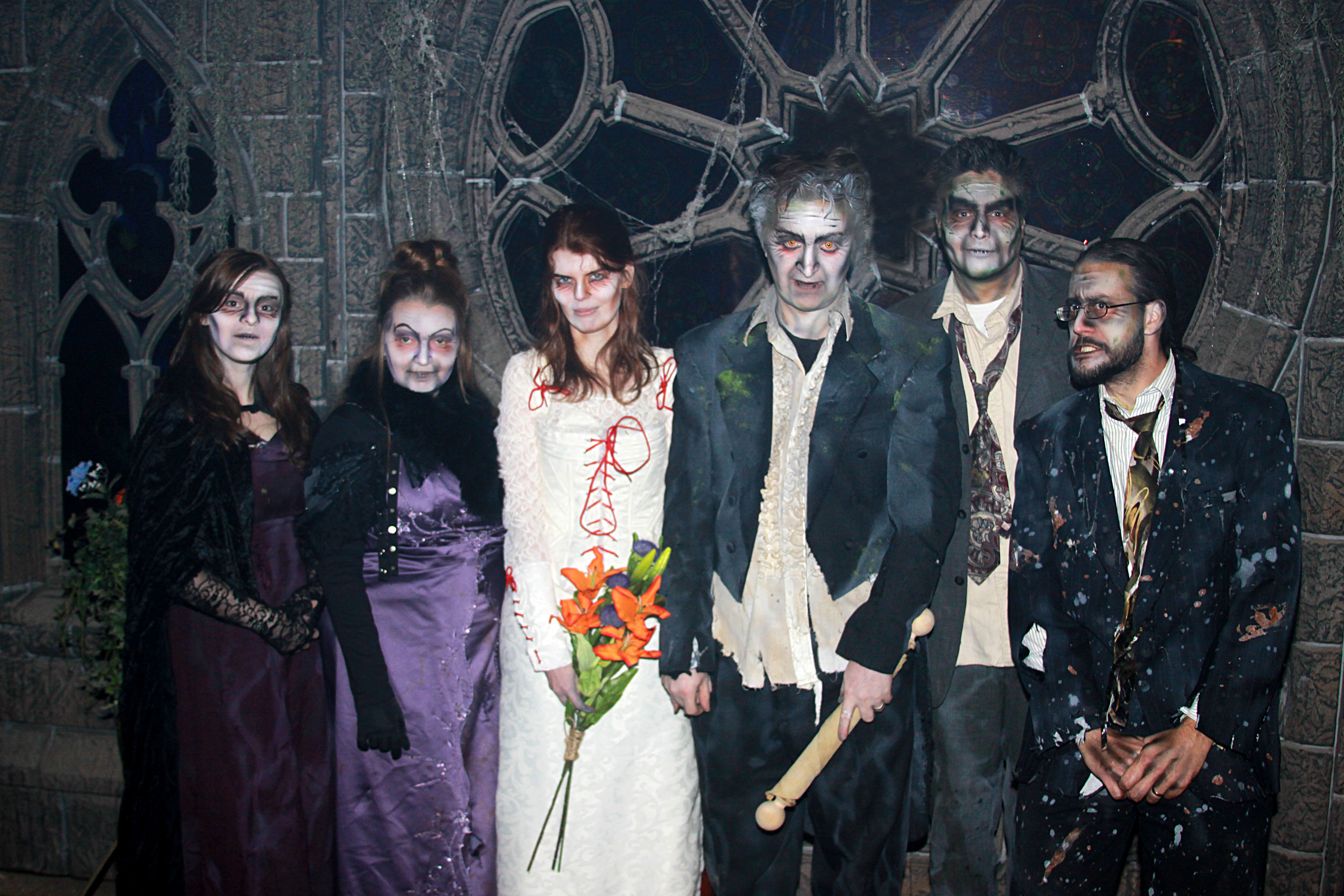Chris took a quick break from scaring the customers to do make-up for the wedding guests and get them all into costume. After the last customer went through, the party got the opportunity to walk through Morgan Manor and they all ended up in the last room, the Chapel. Photos were taken while Morgana's alter ego made sure the FearGrounds closed properly.