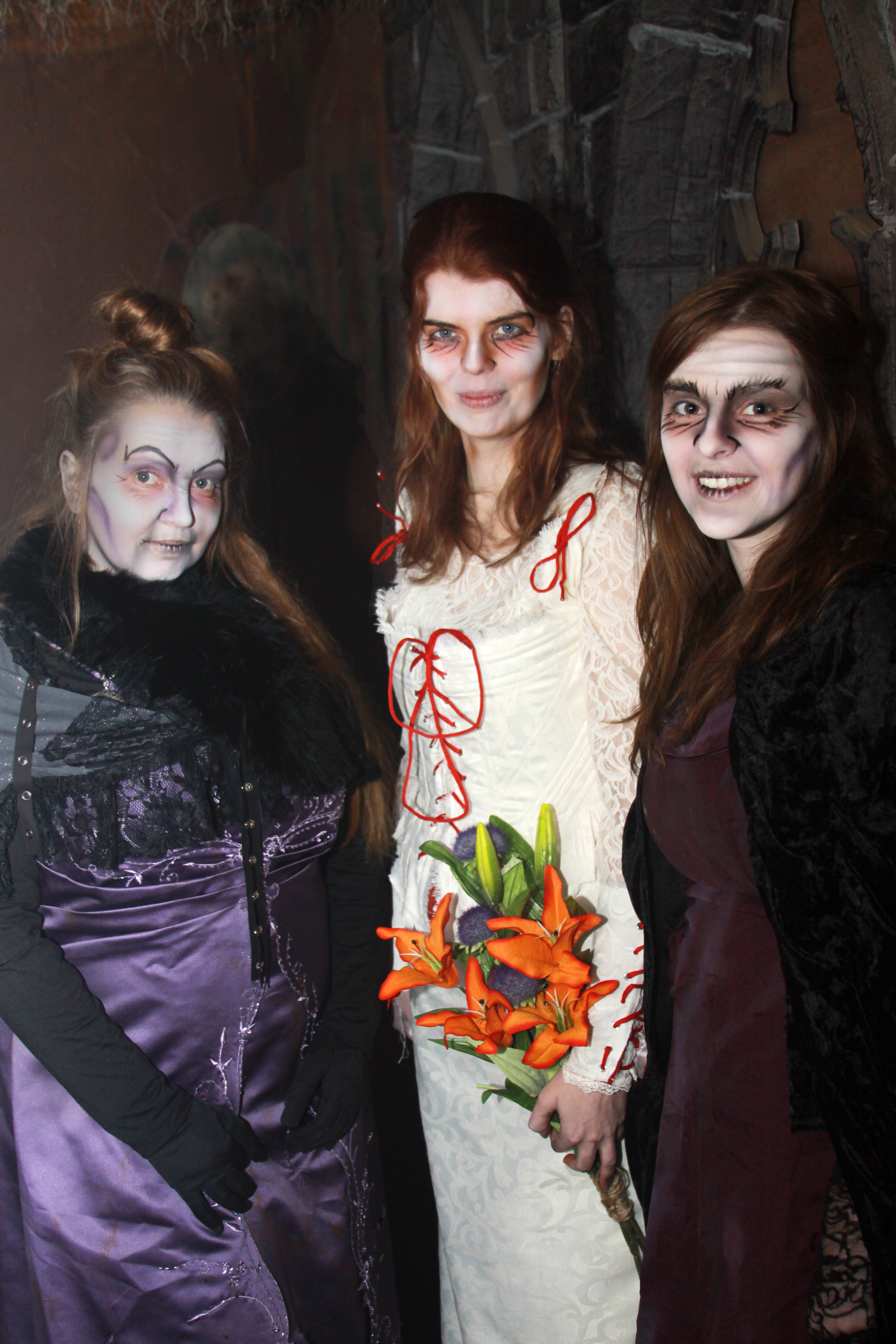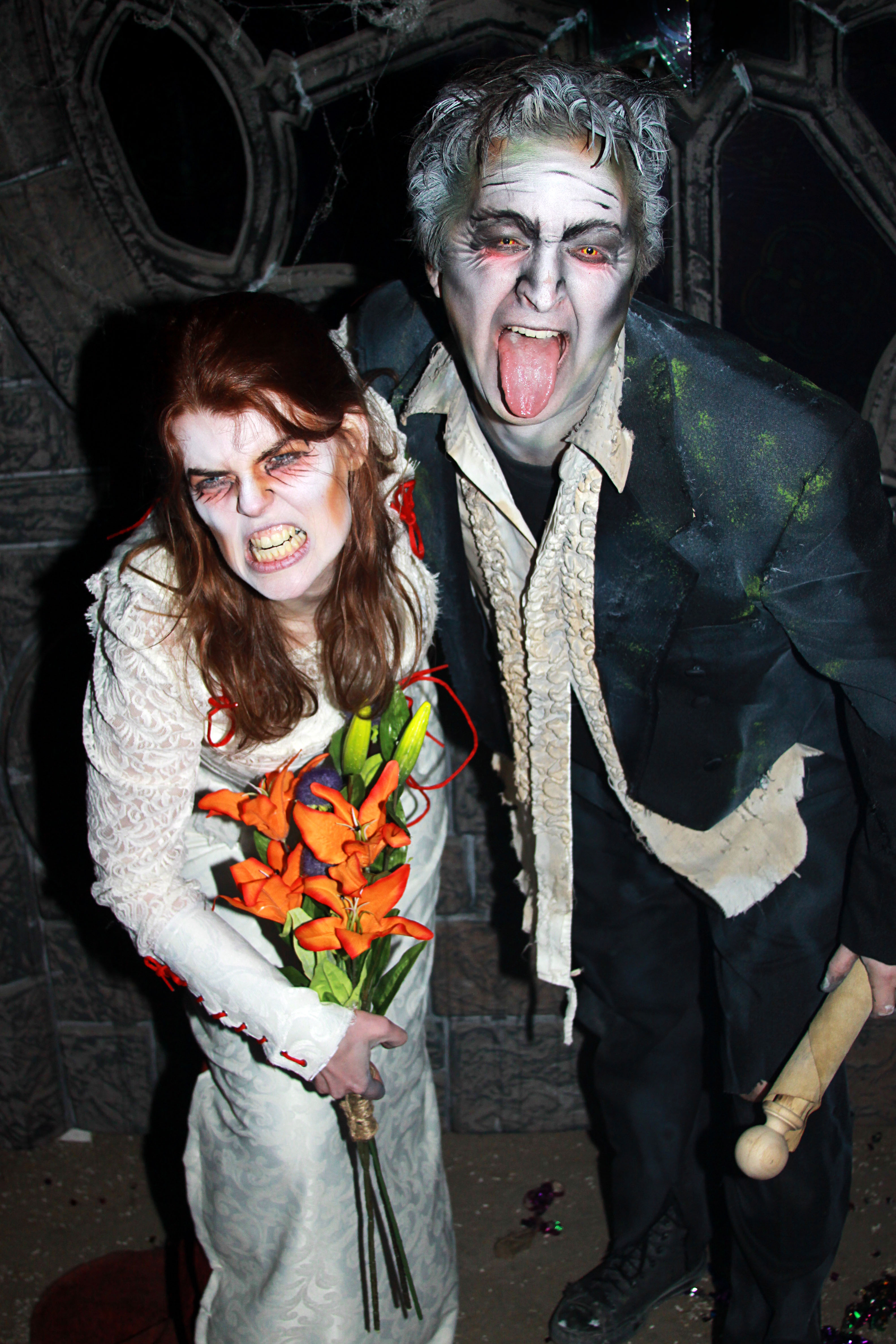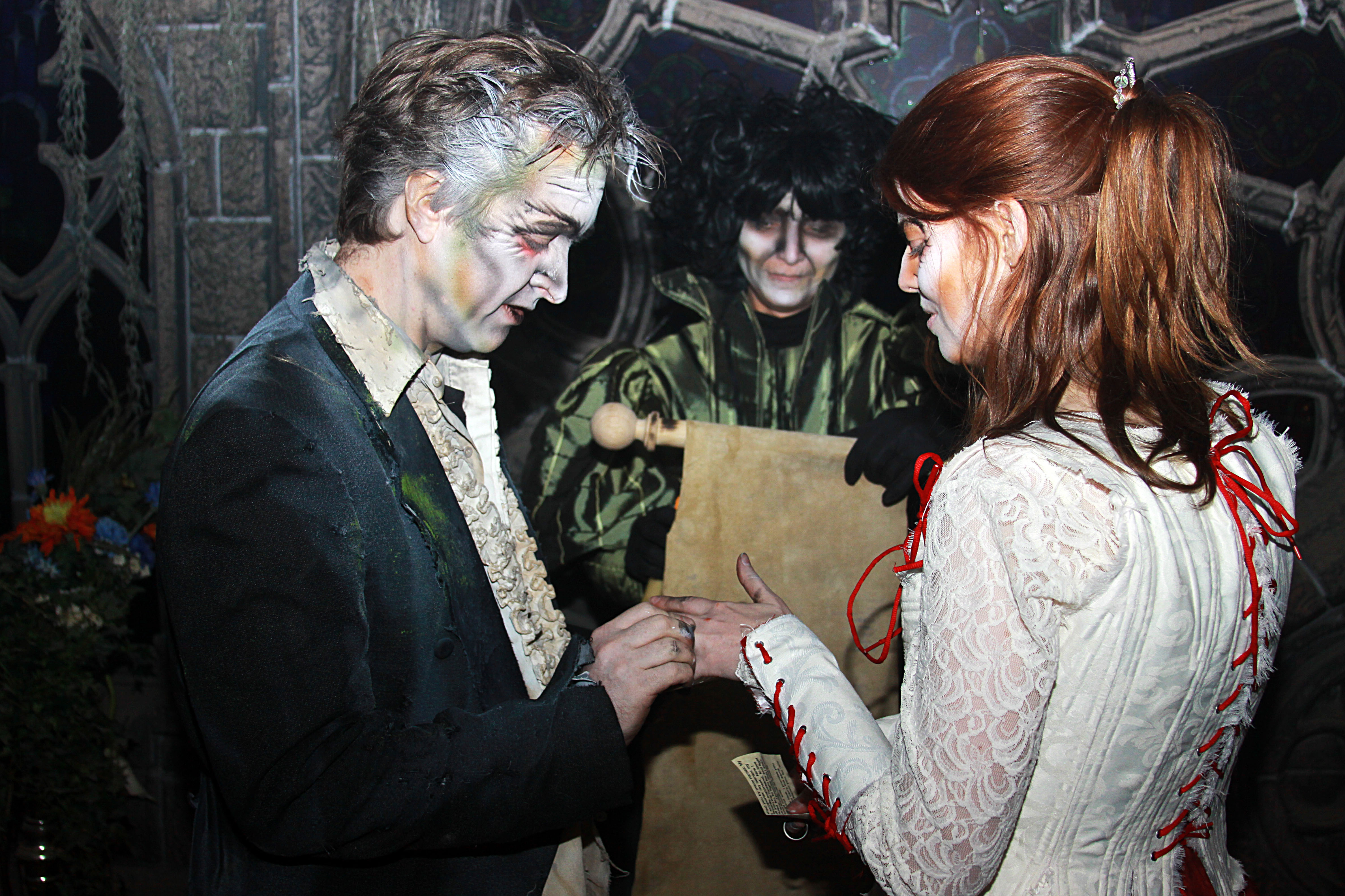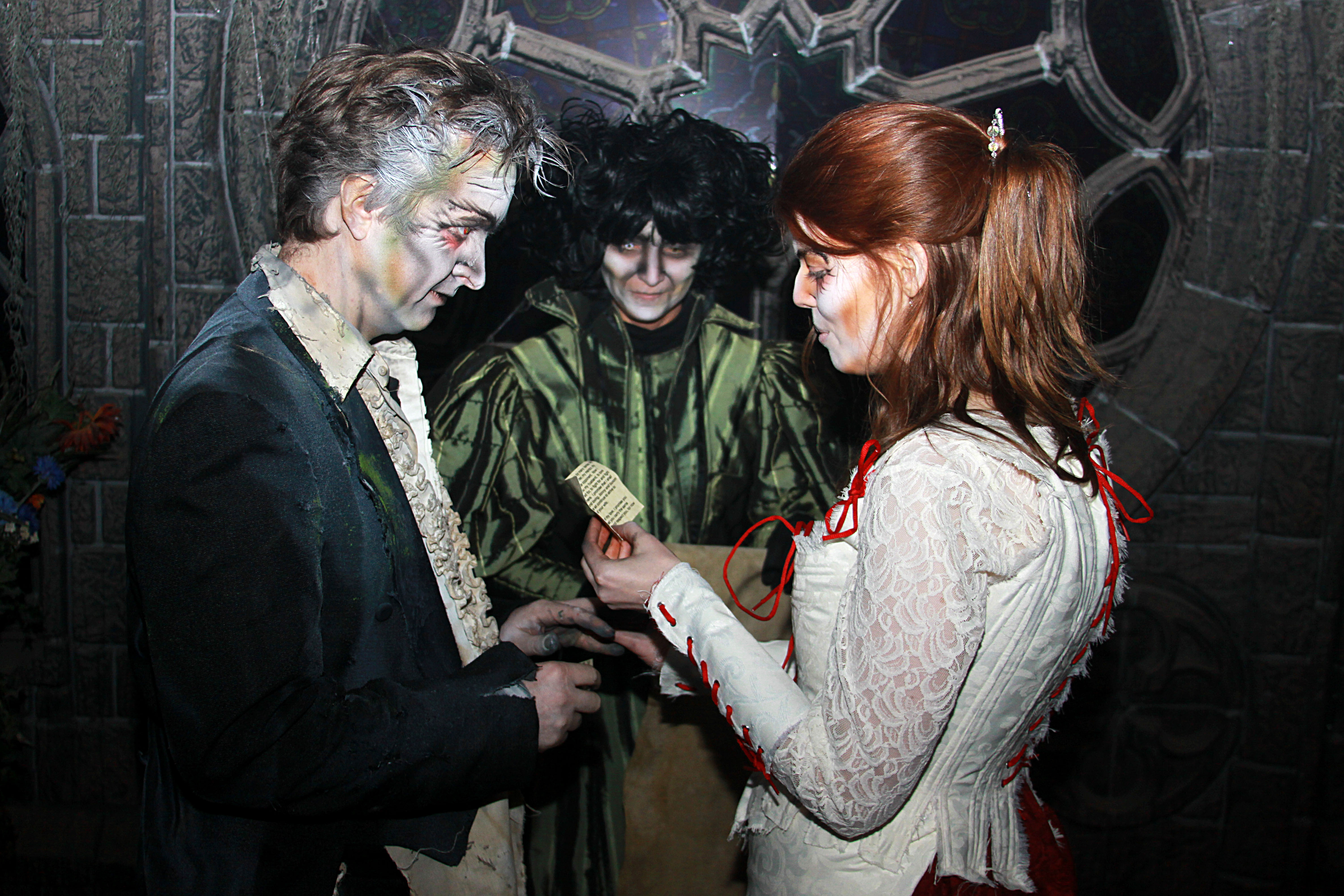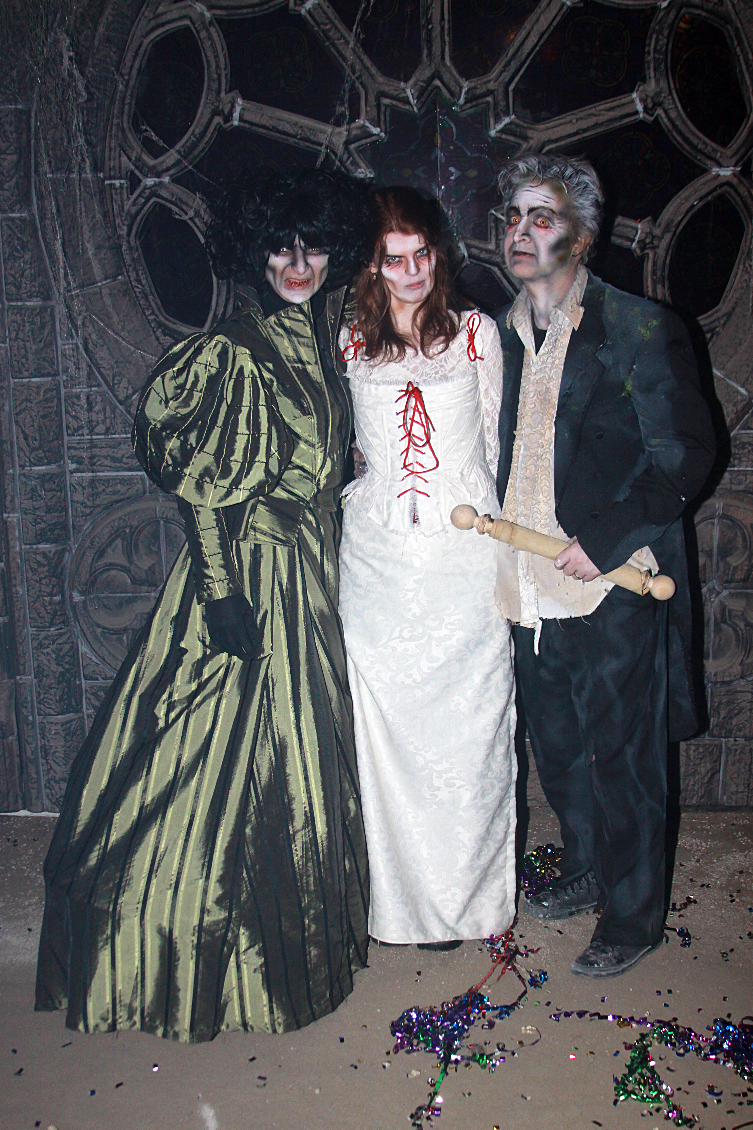 Chris took a quick break from scaring the customers to do make-up for the wedding guests and get them all into costume. After the last customer went through, the party got the opportunity to walk through Morgan Manor and they all ended up in the last room, the Chapel. Photos were taken while Morgana's alter ego made sure the FearGrounds closed properly.