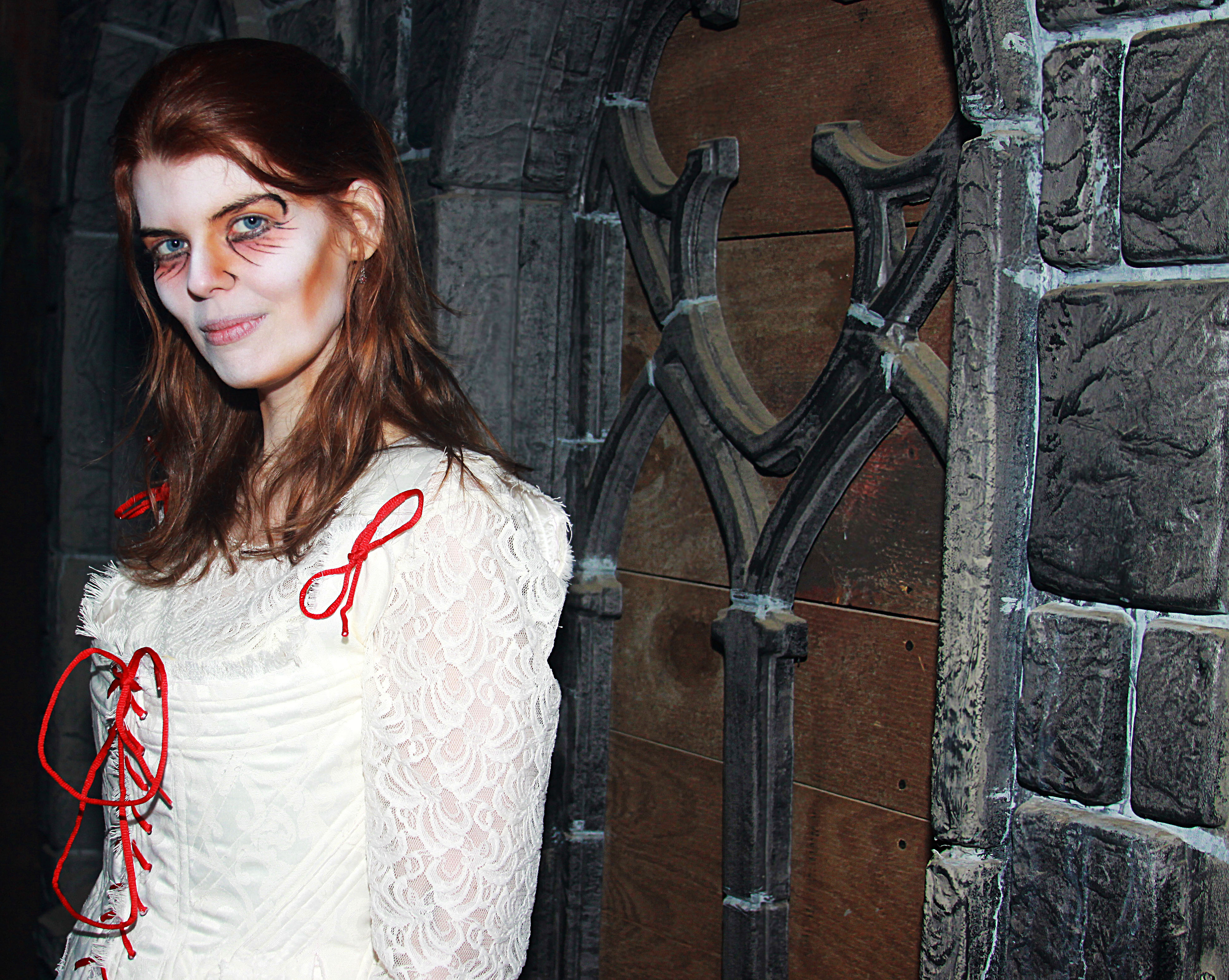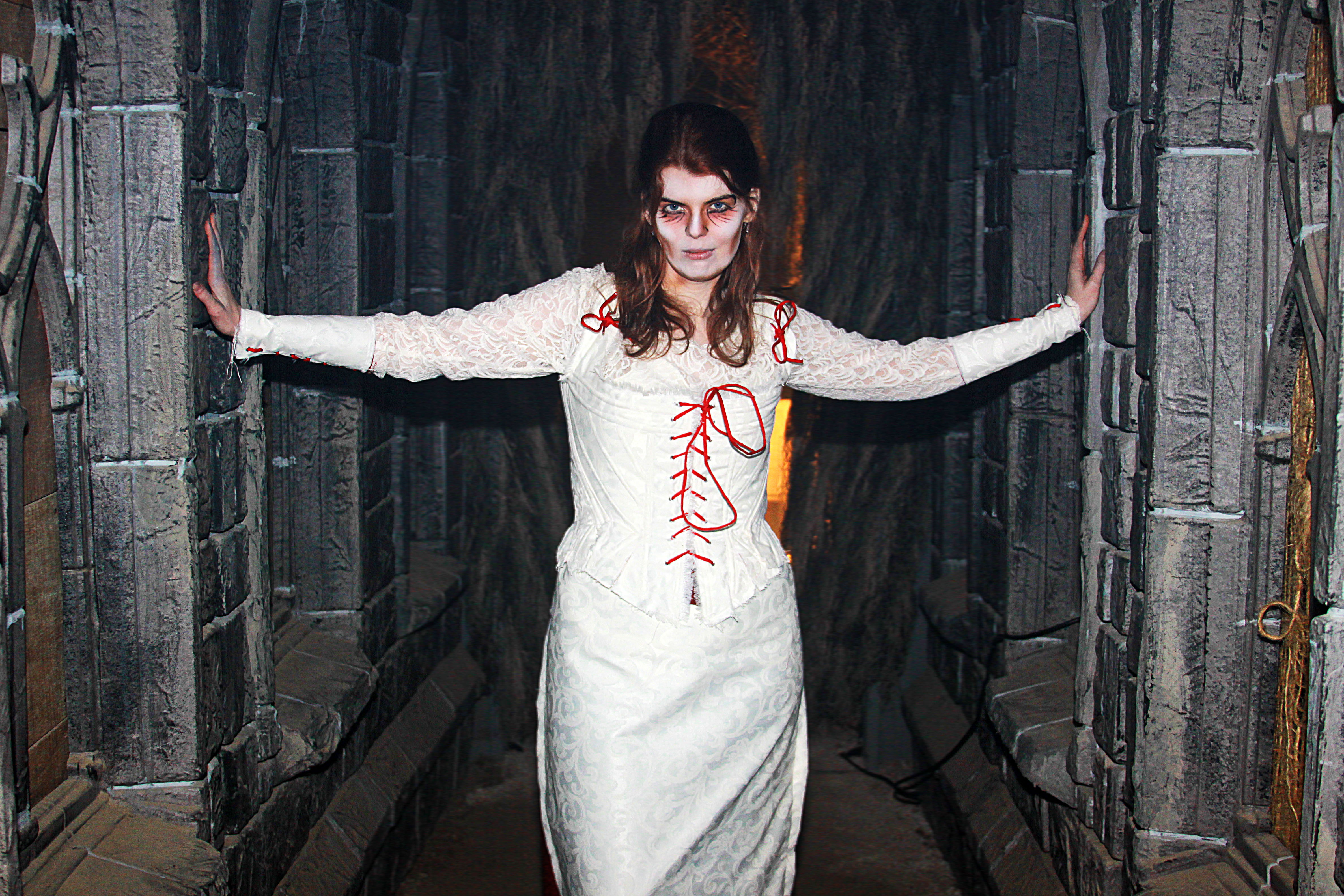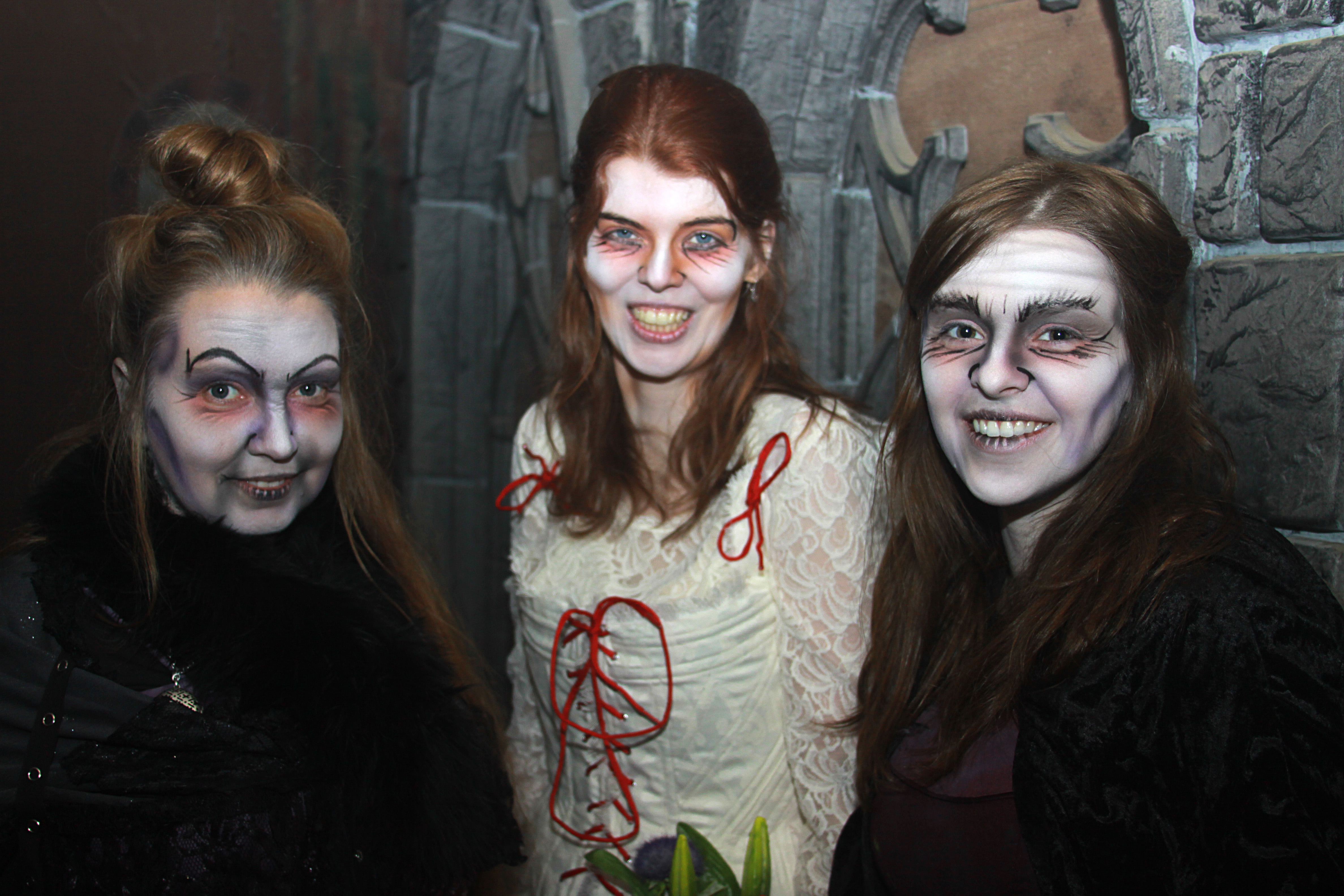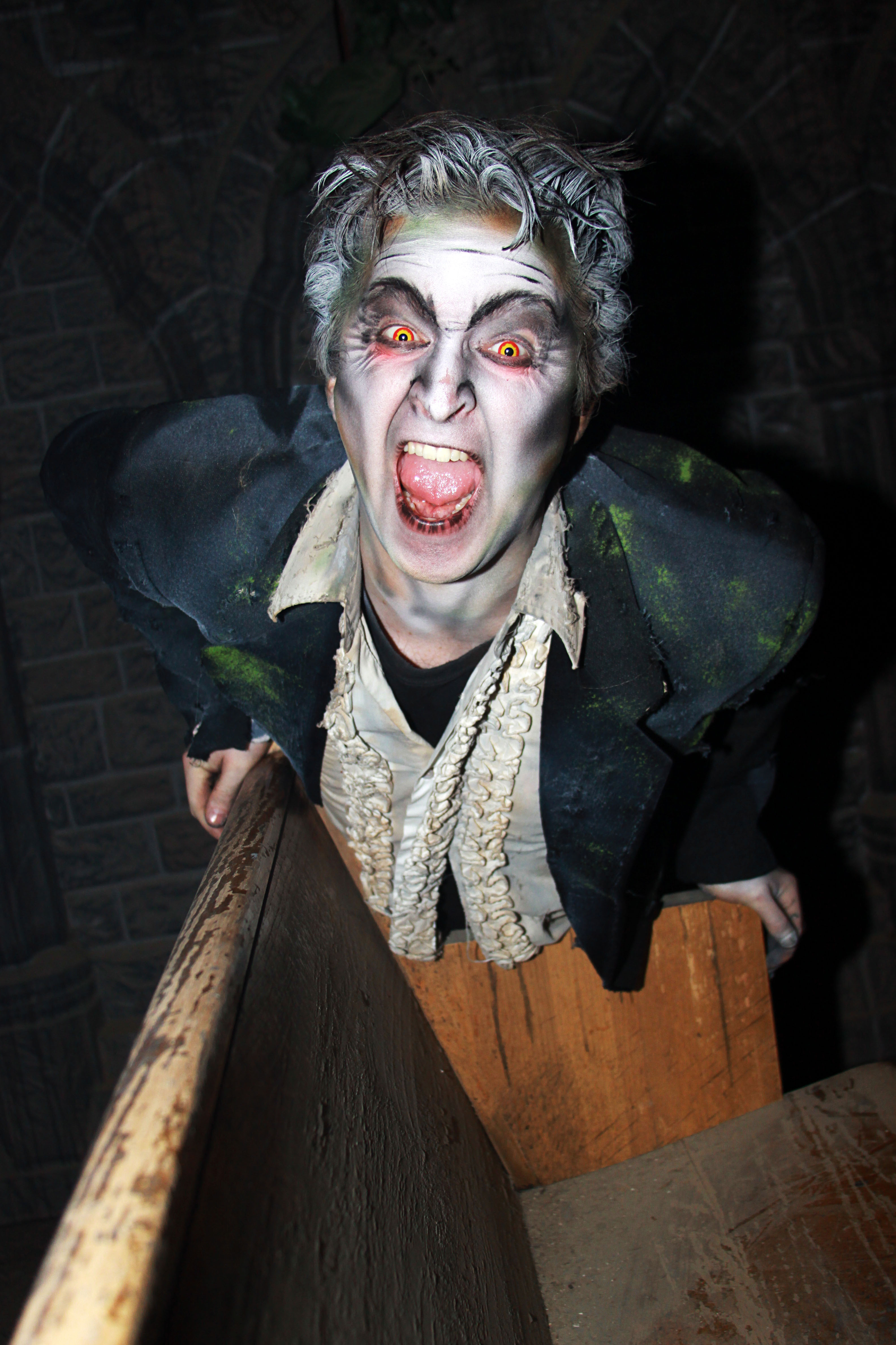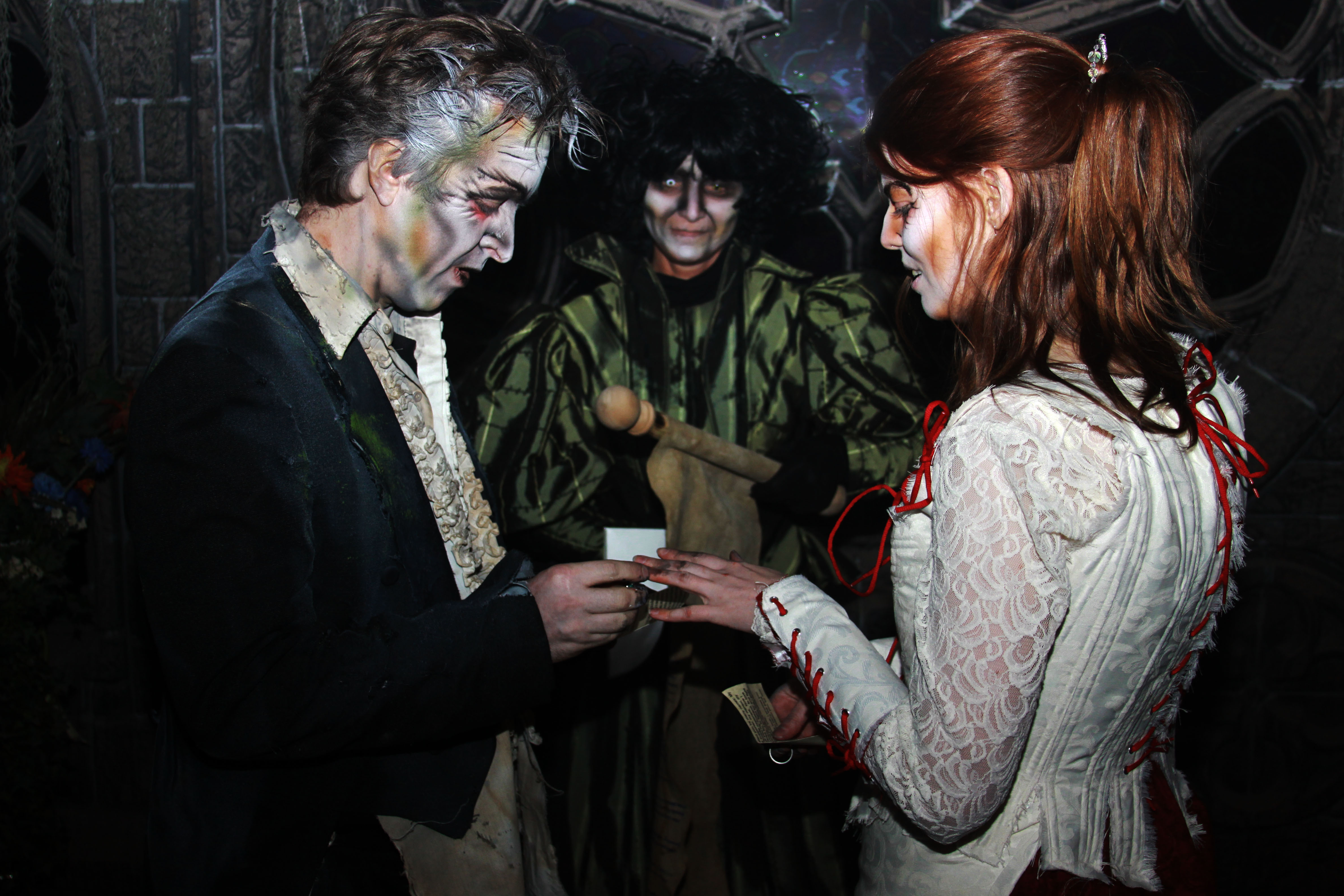 Chris took a quick break from scaring the customers to do make-up for the wedding guests and get them all into costume. After the last customer went through, the party got the opportunity to walk through Morgan Manor and they all ended up in the last room, the Chapel. Photos were taken while Morgana's alter ego made sure the FearGrounds closed properly.